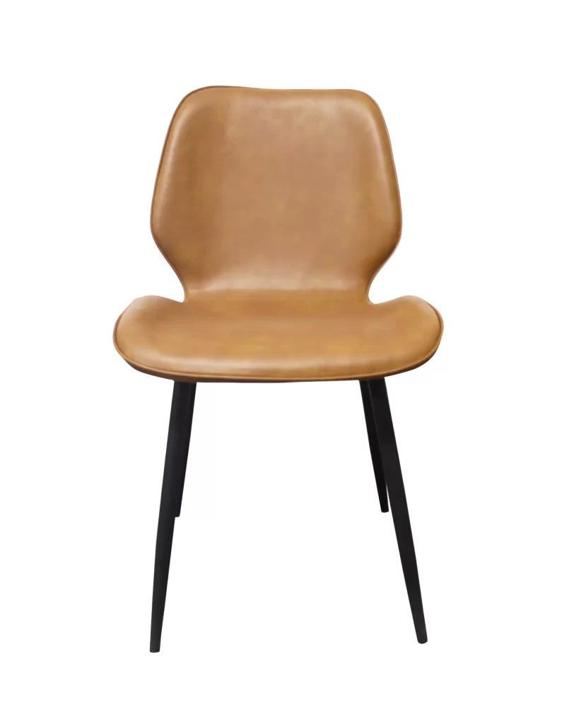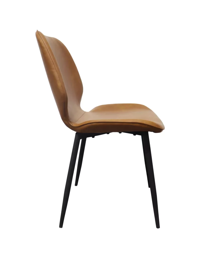 A cadeira Bergen, inspirada no design escandinavo, destaca-se por sua silhueta única. Seu assento em couro ecológico é sustentado por uma base de aço carbono. Uma escolha perfeita para ambientes modernos e minimalistas.