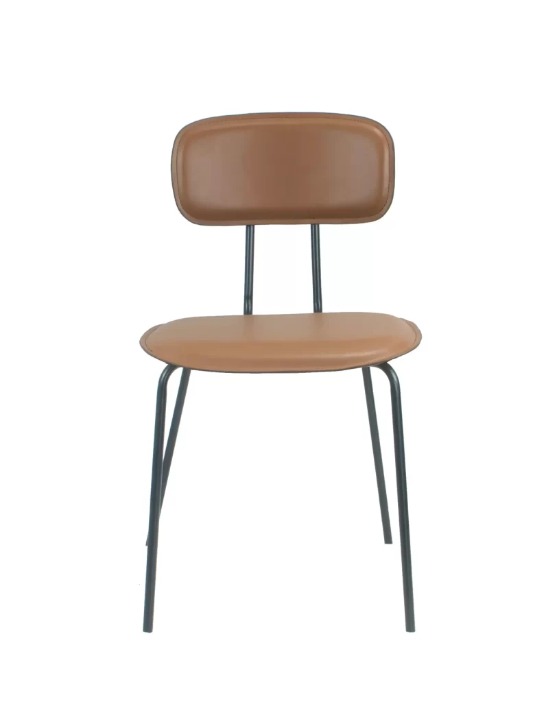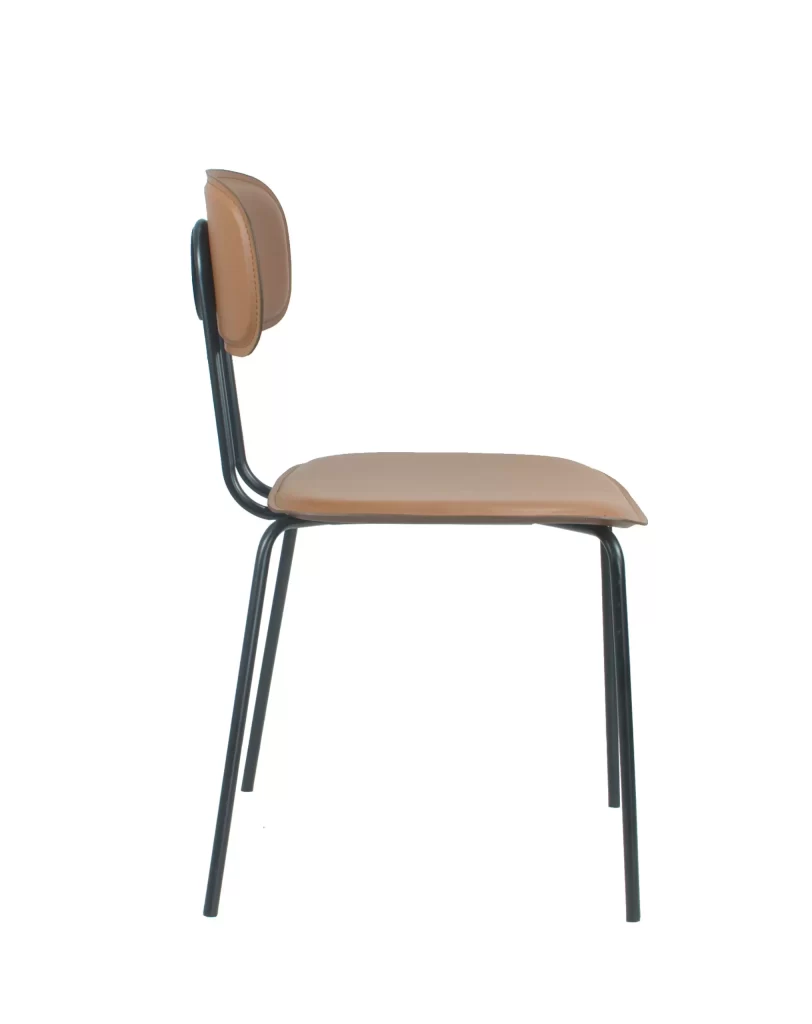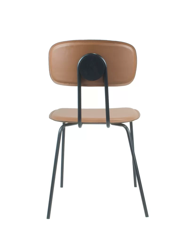 A cadeira New York é uma ótima combinação para o estilo industrial, com seus pés em aço preto que criam um contraste elegante com o couro ecológico do assento e encosto. O detalhe na parte das costas adiciona um charme especial à peça!